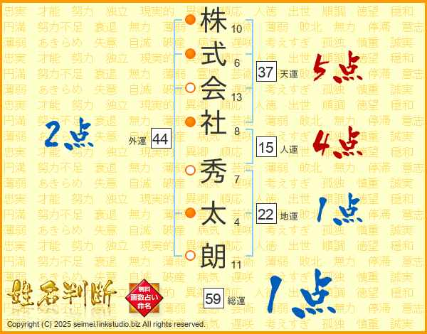 株式会社秀太朗さんの総運は59画の1点!
