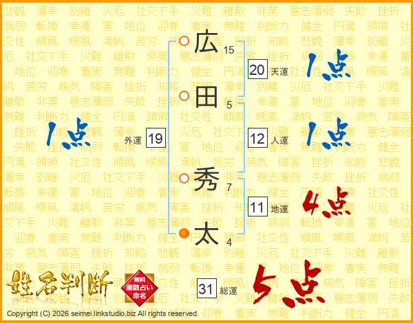 広田秀太さんの総運は31画の5点!