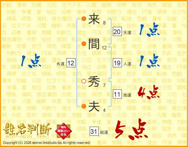 来間秀夫さんの総運は31画の5点!