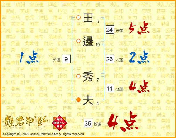 田邊秀夫さんの人運は26画の2点!
