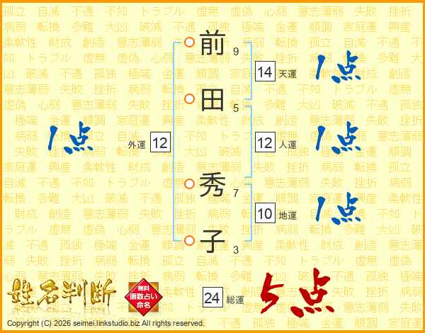 前田秀子さんの総運は24画の5点!