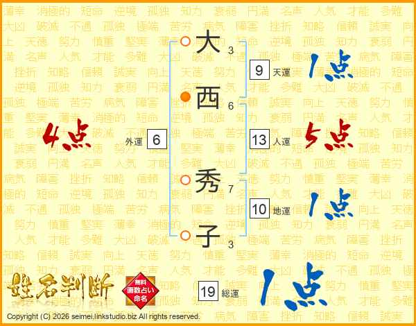 大西秀子さんの人運は13画の5点!