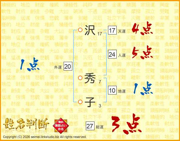 沢秀子さんの総運は27画の3点!