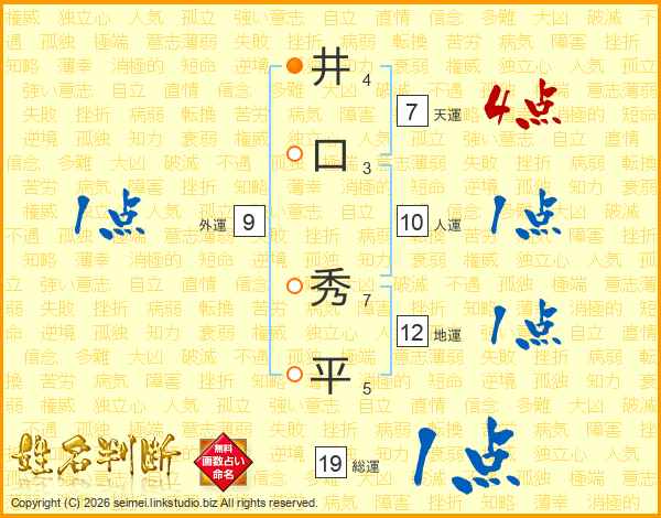 井(4画)口(3画) 秀(7画)平(5画)