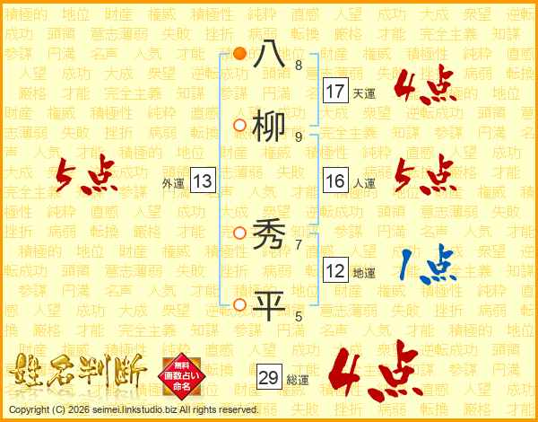 八柳秀平さんの総運は29画の4点!