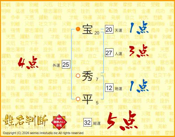 宝秀平さんの総運は32画の5点!
