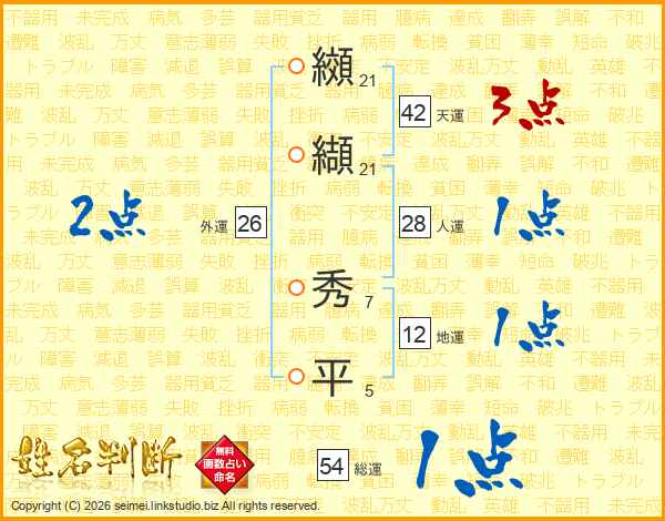 纐纈秀平さんの総運は54画の1点!