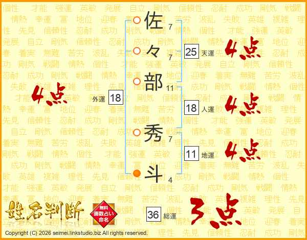 佐々部秀斗さんの天運は25画の4点!