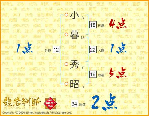 小(3画)暮(15画) 秀(7画)昭(9画)