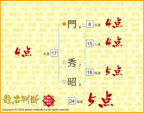 門秀昭さんの総運は24画の5点!