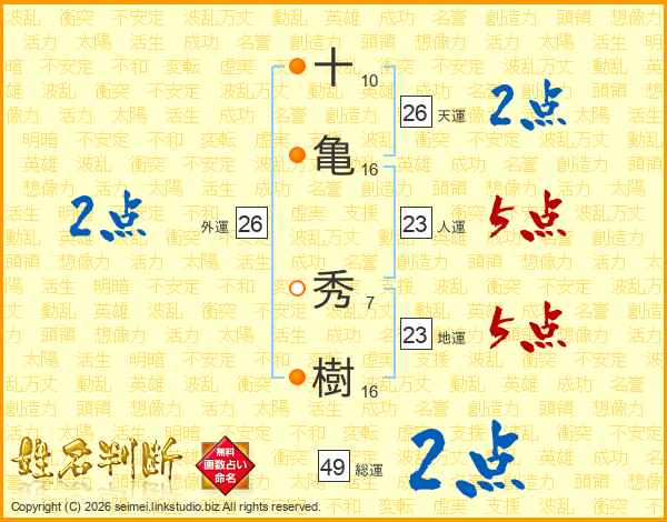 十(10画)亀(16画) 秀(7画)樹(16画)