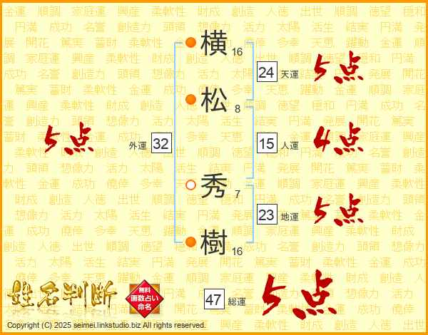 横松秀樹さんの総運は47画の5点!