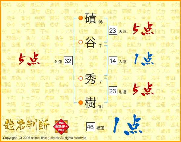 磧谷秀樹さんの天運は23画の5点!