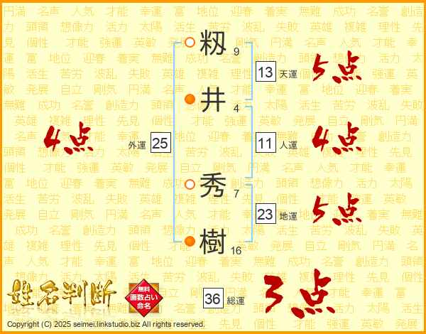 籾(9画)井(4画) 秀(7画)樹(16画)