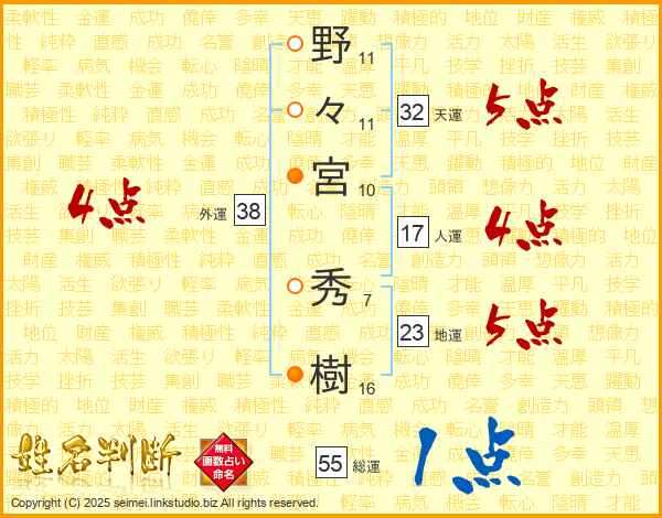 野々宮秀樹さんの外運は38画の4点!