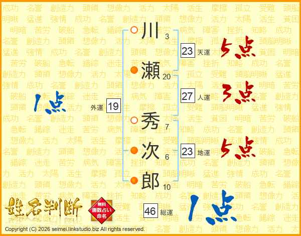 川瀬秀次郎さんの天運は23画の5点!