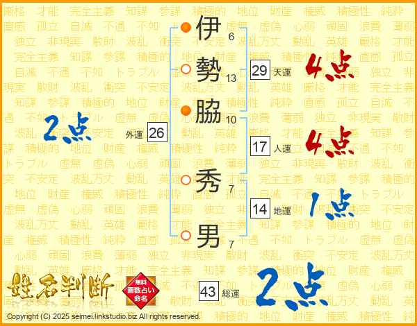 伊勢脇秀男さんの総運は43画の2点!