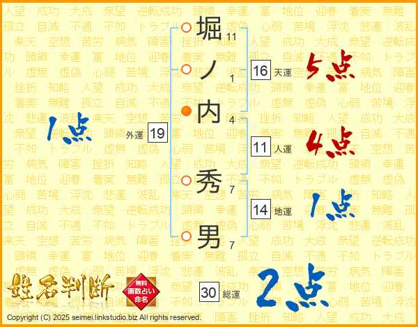 堀ノ内秀男さんの総運は30画の2点!
