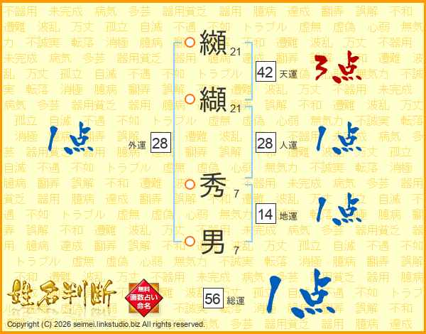 纐(21画)纈(21画) 秀(7画)男(7画)