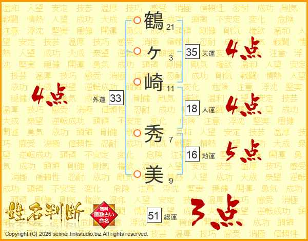 鶴ヶ崎秀美さんの外運は33画の4点!