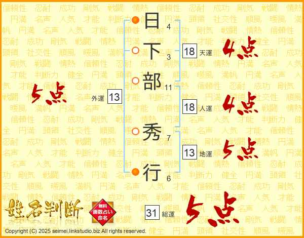 日(4画)下(3画)部(11画) 秀(7画)行(6画)