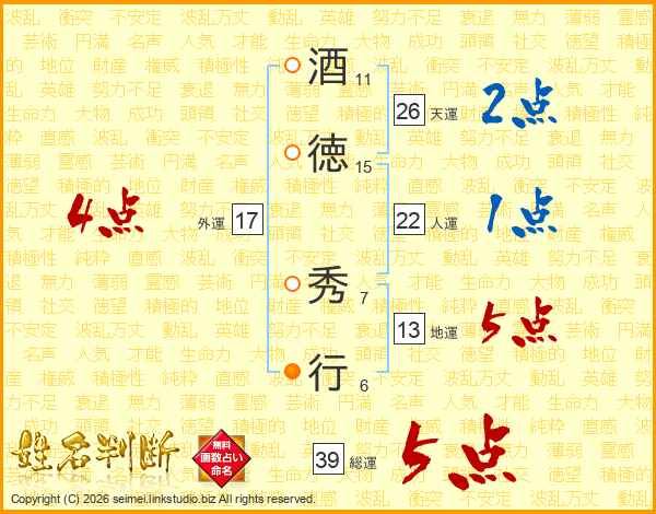 酒徳秀行さんの総運は39画の5点!