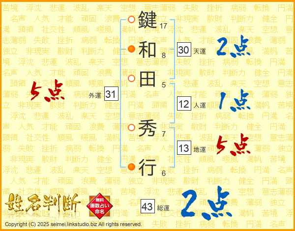 鍵和田秀行さんの天運は30画の2点!