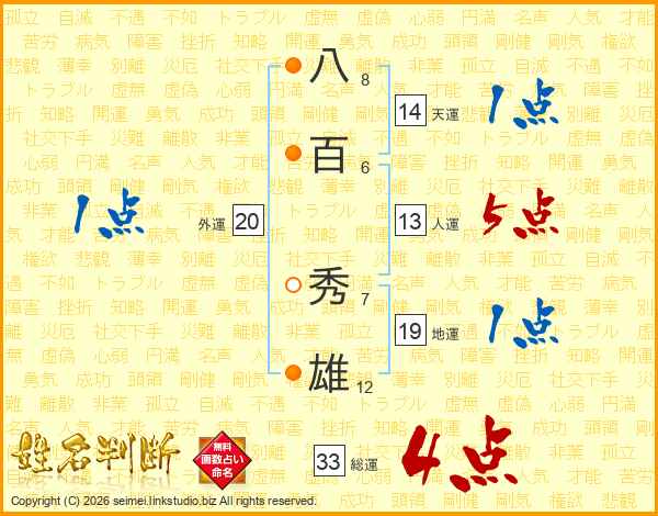 八百秀雄さんの総運は33画の4点!