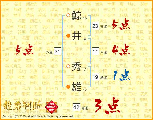 鯨井秀雄さんの総運は42画の3点!