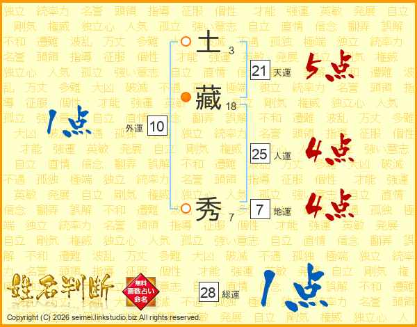 土藏秀さんの総運は28画の1点!