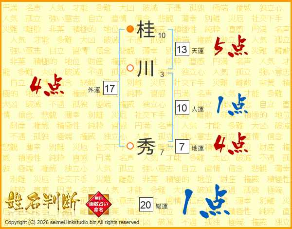 桂川秀さんの総運は20画の1点!