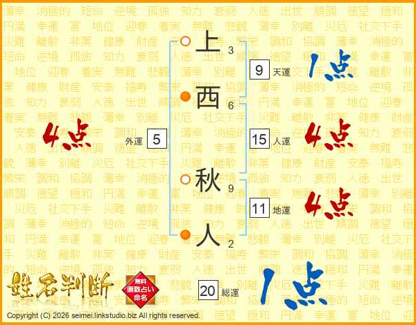 上西秋人さんの地運は11画の4点!