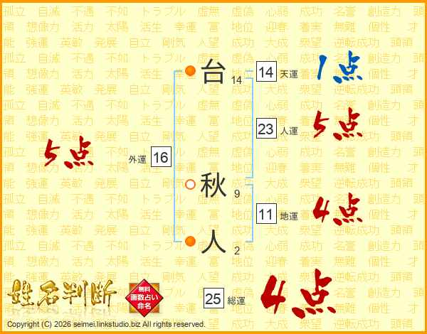 台秋人さんの総運は25画の4点!