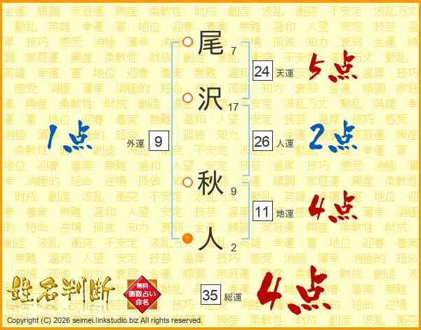 尾沢秋人さんの総運は35画の4点!