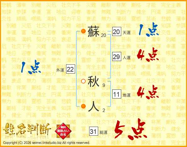 蘇秋人さんの総運は31画の5点!