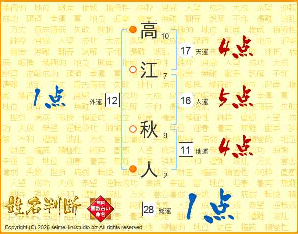 高江秋人さんの総運は28画の1点!