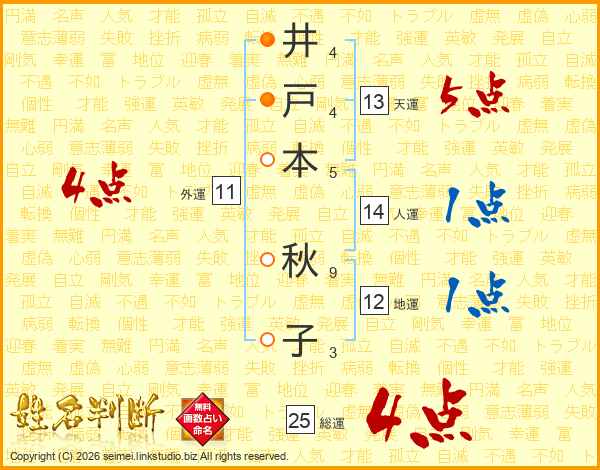 井戸本秋子さんの人運は14画の1点!
