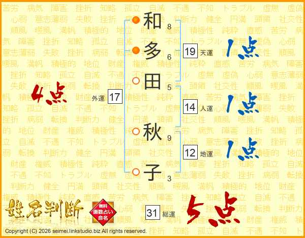 和多田秋子さんの総運は31画の5点!