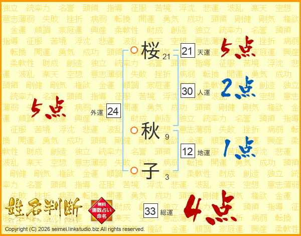 桜秋子さんの総運は33画の4点!
