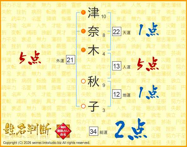 津奈木秋子さんの外運は21画の5点!