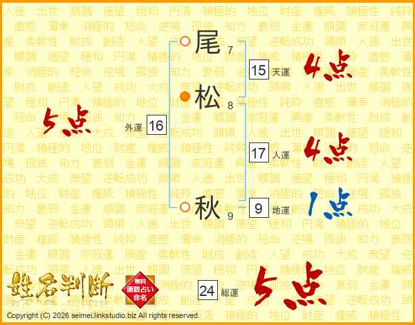 尾松秋さんの総運は24画の5点!