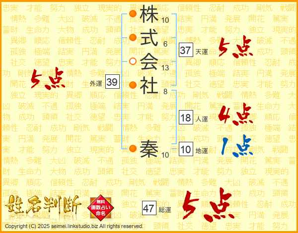 株(10画)式(6画)会(13画)社(8画) 秦(10画)