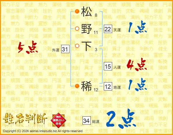 松野下稀さんの天運は22画の1点!