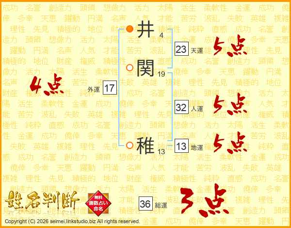 井関稚さんの人運は32画の5点!