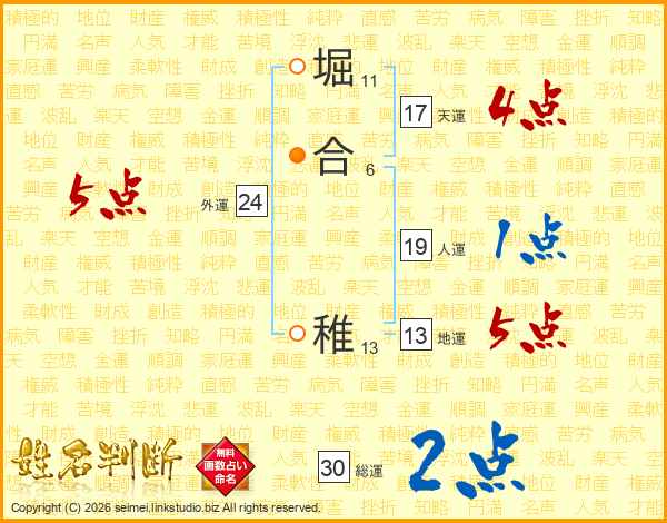 堀合稚さんの総運は30画の2点!