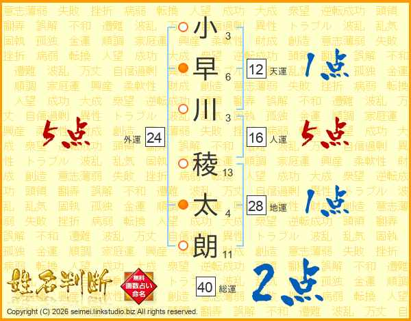 小早川稜太朗さんの総運は40画の2点!