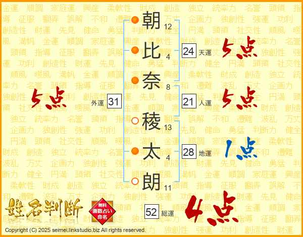 朝比奈稜太朗さんの総運は52画の4点!