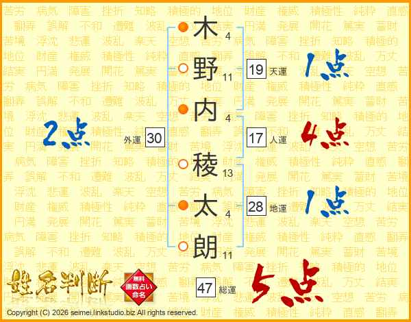 木野内稜太朗さんの総運は47画の5点!