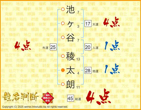 池ヶ谷稜太朗さんの天運は17画の4点!