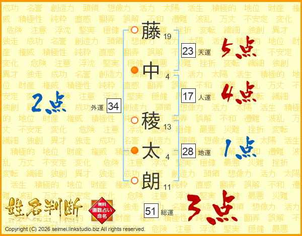 藤中稜太朗さんの天運は23画の5点!